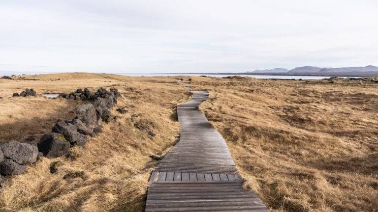 Lagt er af stað frá bílastæði í nágrenni við Lambhagatjarnir. Gamla þjóðleiðin þaðan og út á Öndverðarnes liggur um Nesgötu.