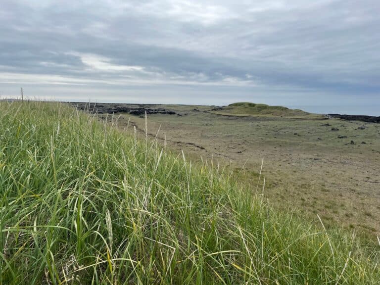 We start from a parking lot in the vicinity of Lambhagatjarnir. The old national route from there to Öndverdarnes runs through Nesgäta.