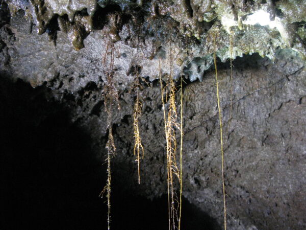 Beinin voru mjög dökk að hluta, næstum eins og brennd og talsvert morkin, okkur taldist til að þetta væru átta leggir og eitthvað af öðrum beinum en talsvert dreifð um hellinn. Síðan var farið að skoða grjóthrúguna á gólfinu en hún samanstóð af hraunhellum sem flestar hverjar virtust eiga upptök sín í lofti hellisins og höfðu hrunið á gólfið. Þeim hafði verið raðað saman til að mynda einskonar eldstæði og á milli þeirra voru öskuleifar sem mynduðu hring á stærð við meðalstóran matardisk. Ofan á öskunni var þunn hraunhella sem nánast huldi öskulagið. Nú hófust miklar bollaleggingar og margt flaug um í huga okkar um tilveru þessa. Við ákváðum að hreyfa ekki við neinu en höfðum þá tekið helluna ofan af öskuleifunum. Allt var myndað í bak og fyrir og síðan hófst nánari könnun á hellinum. Næst var farið inn í álmuna á vinstri hönd en hún virtist heldur greiðfærari þó ekki væri hægt að ganga uppréttur fyrstu metrana en heldur hækkaði til lofts er innar dróg. Þegar komið var um 20 metra sameinuðust hvelfingarnar á ný og áfram hélt hellirinn ágætlega manngengur. Skyndilega blasti við okkur ansi merkileg sjón þar sem hellirinn var rúmir 2 metrar á hæð héngu tvær rætur með nokkura sentimetra millibili frá lofti og alveg niður á gólf, en eftir rótunum rann síðan vatn í stríðum straumum. Við höfum oft séð rætur stinga sér í gegnum hellaloft á yfirborðsrásum en aldrei fyrr svo langar að þær nái niður á gólf. Frá rótunum og inn í botn hellisins voru ca. 10 metrar. Síðan fór hluti hópsins hægri rásina til baka en hún var talsvert hrunin og í henni miðri var smá útúrdúr um það bil 6-8 metrar sem voru skriðnir þar. Á þessum slóðum var einn hluti leggjanna og eitthvað af smærri beinum. Samkvæmt samanlögðum mælingum með laser reiknast hellirinn nálægt 100 metra langur, en gera þarf nákvæmari mælingar.