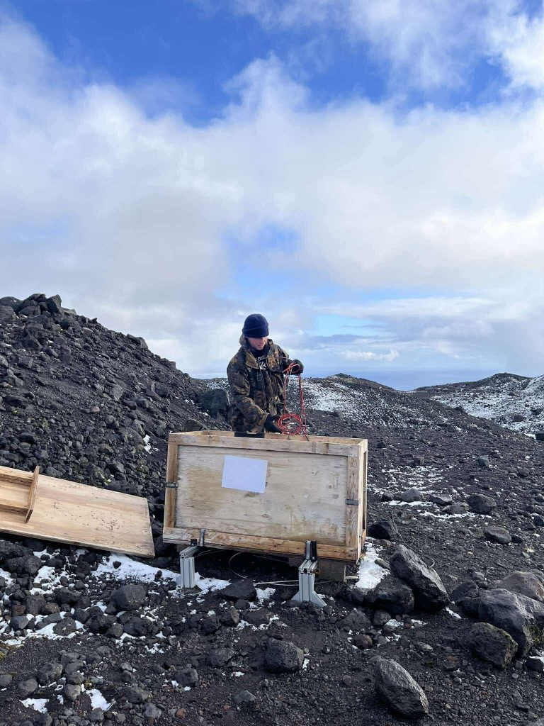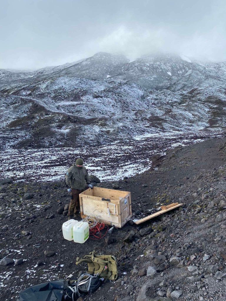 Eitt af verkefnum landvarða þjóðgarðsins í vikunni fólst í því að sækja búnaðinn og flytja hann niður í samvinnu við vísindamenn á vegum Jaques Marteu.